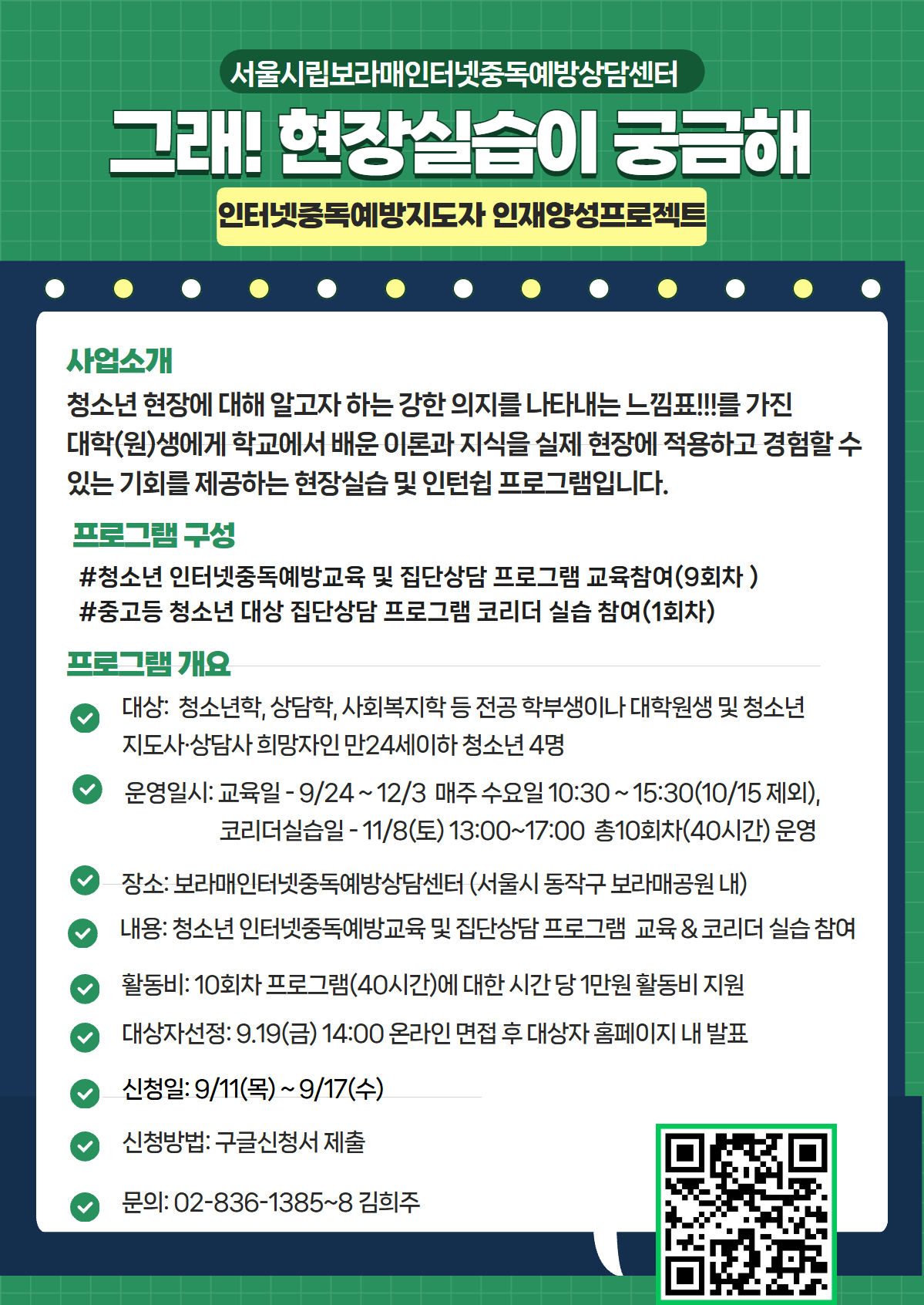 - 청소년학, 상담학, 사회복지학 등 전공 학부생이나 대학원생 및 청소년지도사와 상담사 희망자인 만 24세이하 청소년