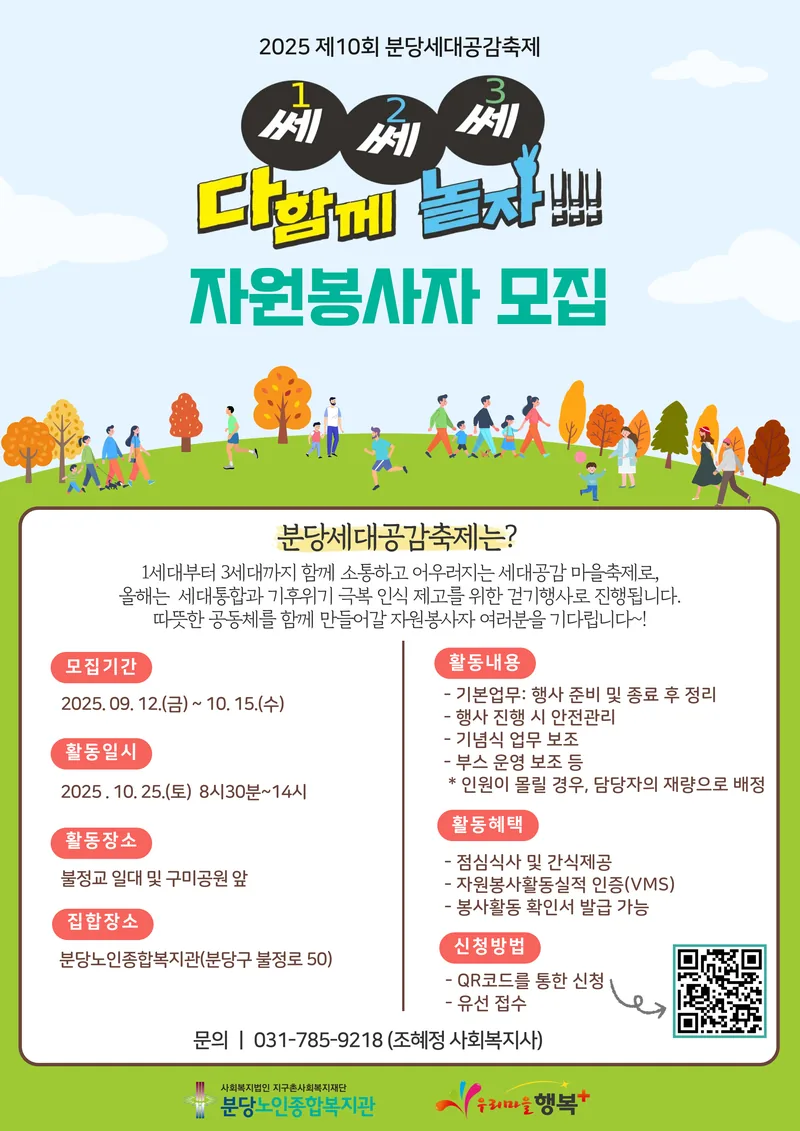 분당구의 대표적인 마을축제로, 1~3세대가 함께 어울리는 통합의 장을 마련하고자 매년 분당세대공감축제를 진행하고 있습니다.