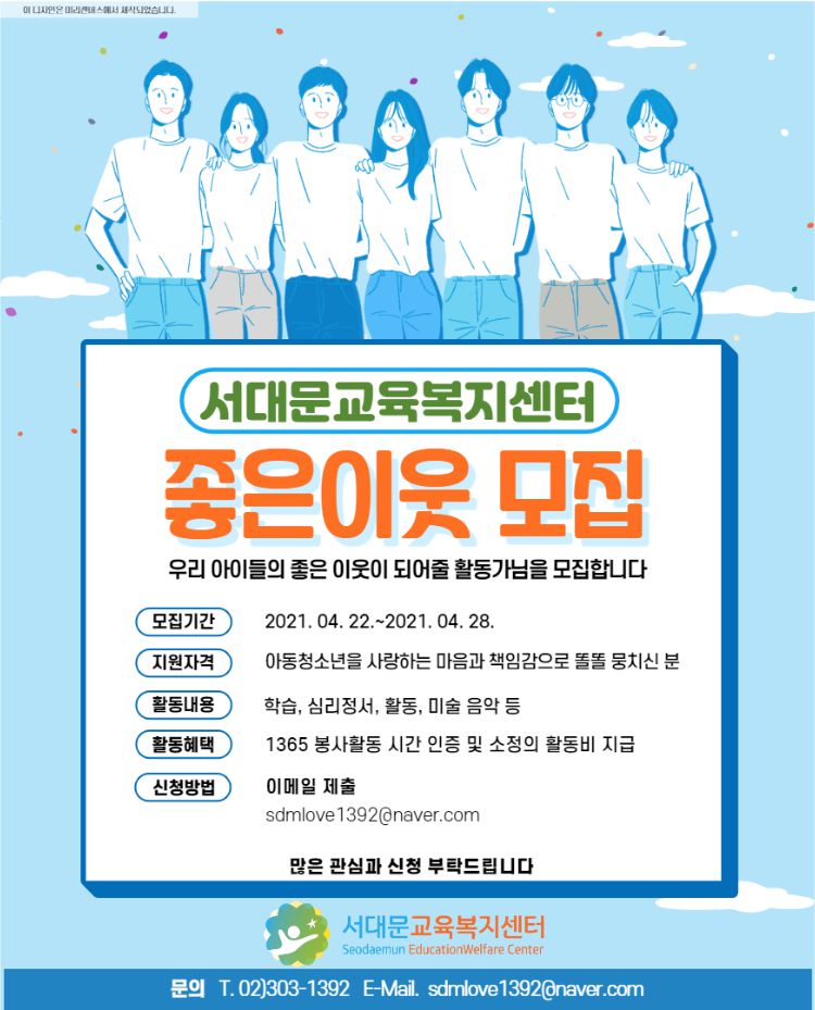 우리아이들에게 좋은이웃이 되어줄 활동가님을 모집합니다.