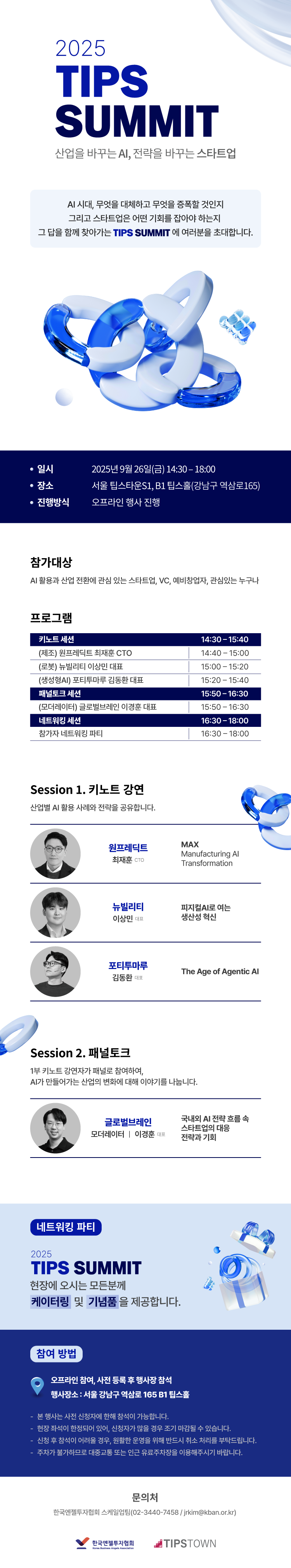 2025 TIPS SUMMIT : 산업을 움직이는 AI, 전략을 바꾸는 스타트업