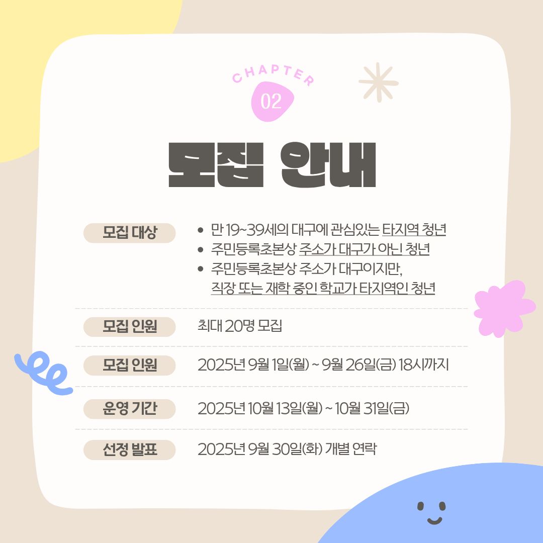 ○ 선정자 발표: 2025. 9. 30.(화) 선정자 개별 연락