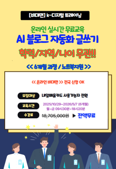 -[동아일보] AI로 블로그 자동화 글쓰기 AI수익화 온라인 KDT강의(노트북제공) 참여자를 모집합니다.