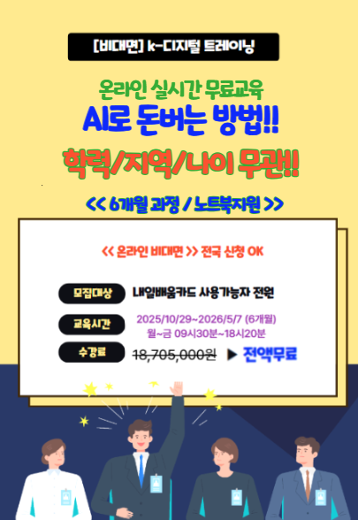 -[동아일보] AI로 돈버는방법 온라인 비대면 국비지원 KDT강의(노트북제공) 참여자를 모집합니다.