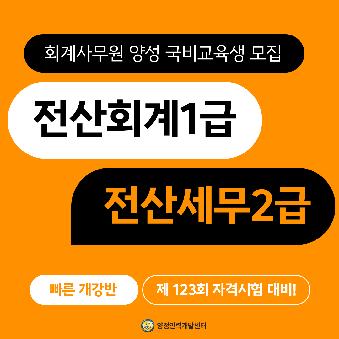 📢 회계사무원 양성(전산회계&전산세무) (10/13개강)