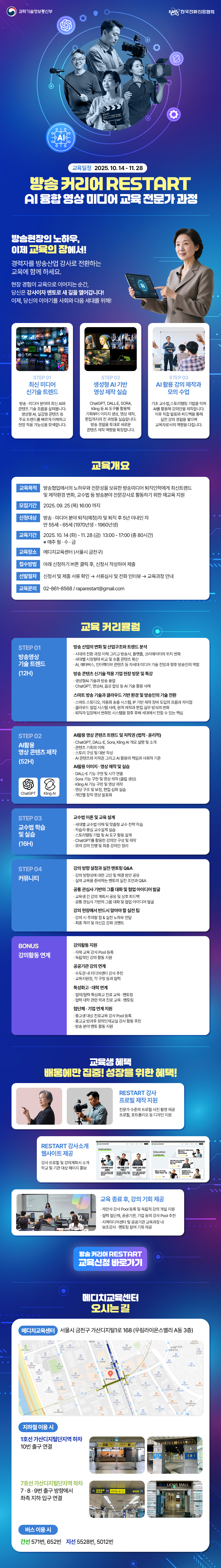 최신트렌드 및 제작환경 변화, 교수법 등 방송분야 전문강사로 활동하기 위한 재교육 지원