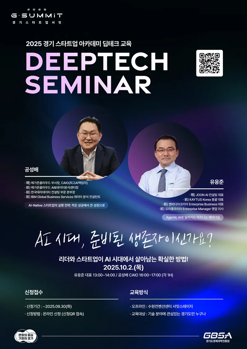 AI와 최신 기술 트렌드를 짧은 기간에 쉽게 배울 수 있는 세미나입니다. 대학생, 예비 창업가, 스타트업 모두에게 필요한 인사이트와 실행 전략을 담아, 변화하는 시대에 꼭 필요한 성장 기회를 제공합니다.