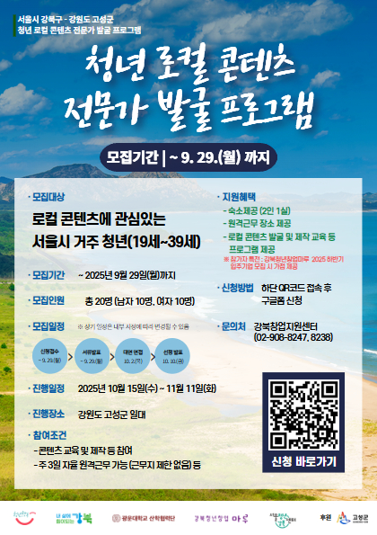 로컬 콘텐츠에 관심있는 청년들의 많은 관심과 참여 바랍니다.