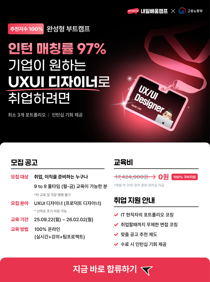 내일배움캠프 UXUI 트랙에서 디자인 필드로 나갈 준비를 모두 끝내세요.