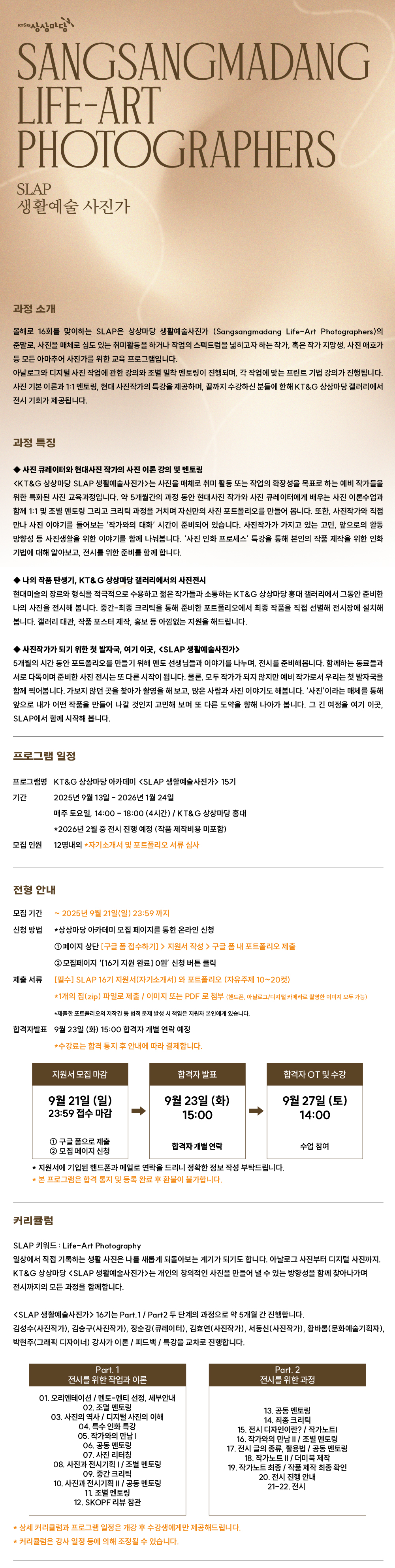 KT&G상상마당 SLAP 생활예술사진가 16기 추가모집