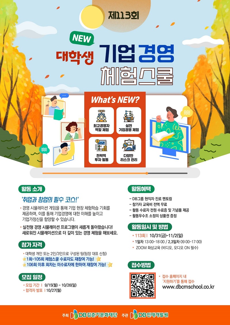 DB그룹 제113회 NEW 대학생 기업경영 체험스쿨 참여자 모집