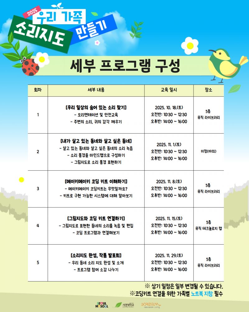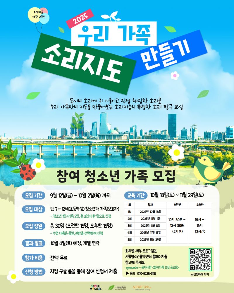 🌿 자연과 도시의 소리를 함께 느끼며 환경에 대해 생각해보고, 우리 가족만의 특별한 추억도 만들 수 있어요! 💚💬 🎧 직접 소리를 채집하고 💻 미디어 지도로 표현해보는 활동까지!