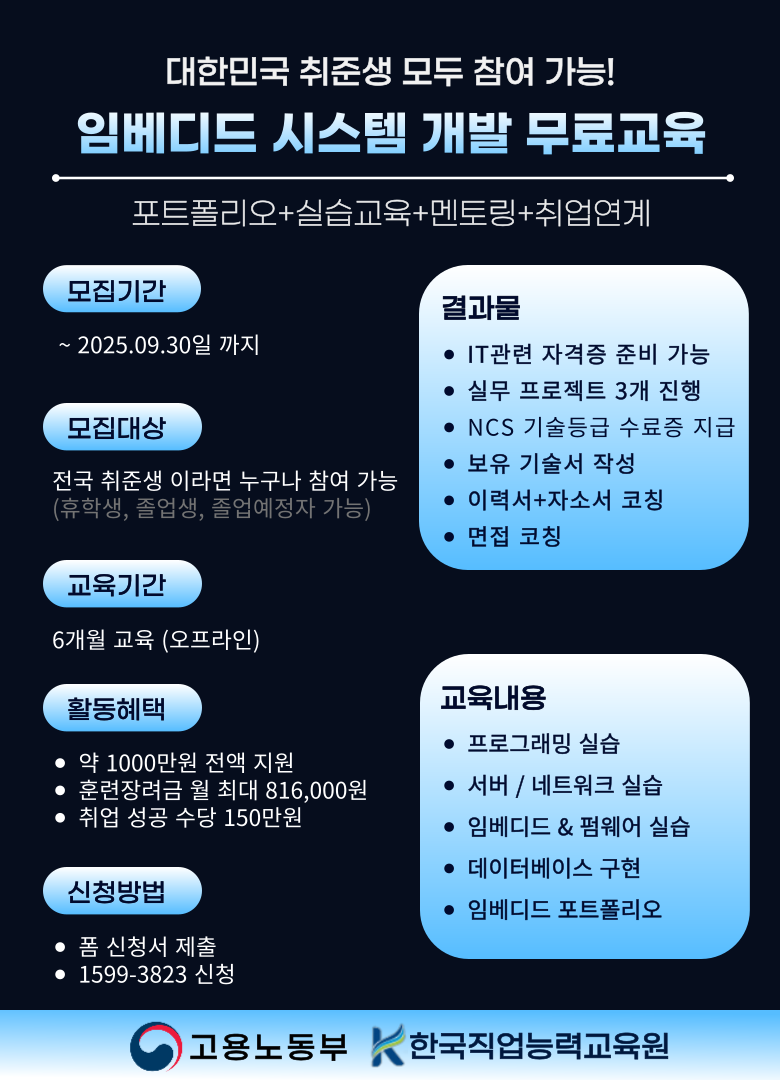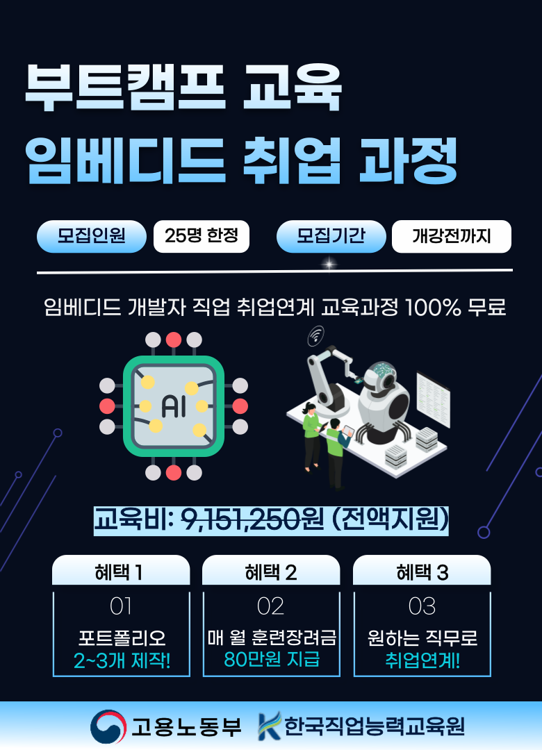 안산 임베디드 시스템 개발자 부트캠프 학원 취업 100% 무료교육