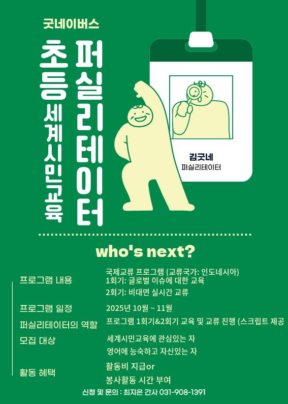 굿네이버스 경기2사업본부에서 초등 국제교류 프로그램 퍼실리테이터를 모집합니다