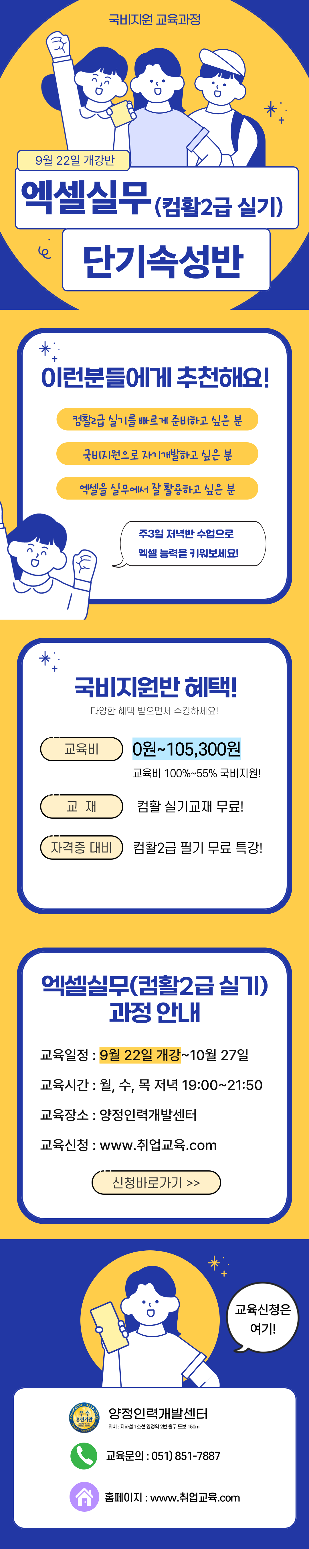 [국비지원 자격증반] 단기간에 완성하는 컴활2급 실기 취득과정! (주3일 저녁반)