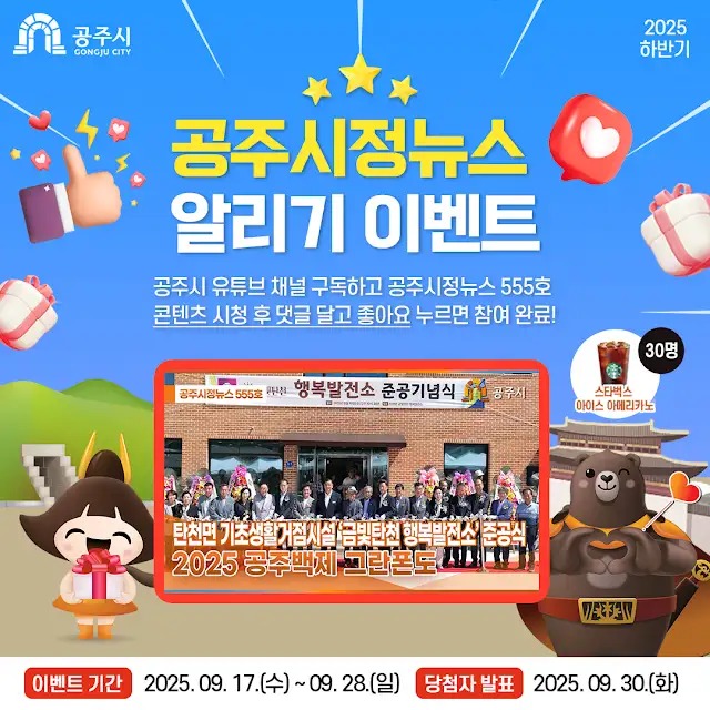 ๐ 2025 ํ๋ฐ๊ธฐ ๊ณต์ฃผ์์ ๋ด์ค ์๋ฆฌ๊ธฐ ์ด๋ฒคํธ ๐