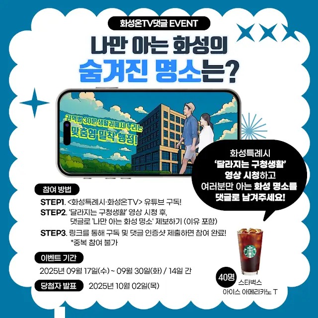 ② ‘달라지는 구청생활’ 영상 시청 후, 댓글로 ‘나만 아는 화성 명소’ 제보하기 ✍️