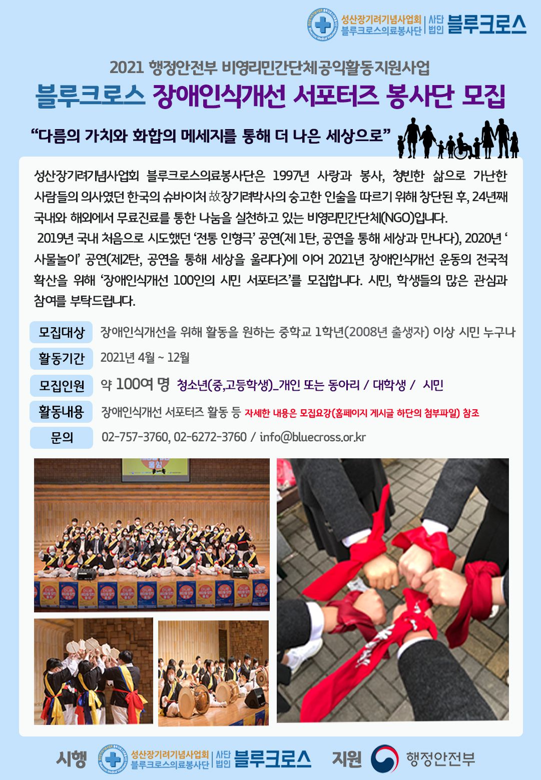 블루크로스 장애인식개선 서포터즈 봉사단 ★봉사 단원 모집★