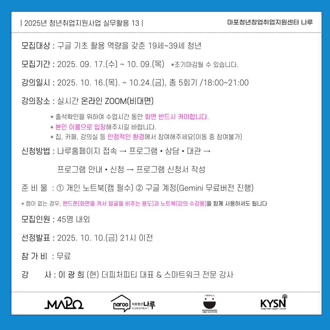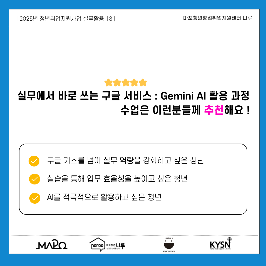 ☑ 구글 기초를 넘어 실무 역량을 강화하 싶은 청년