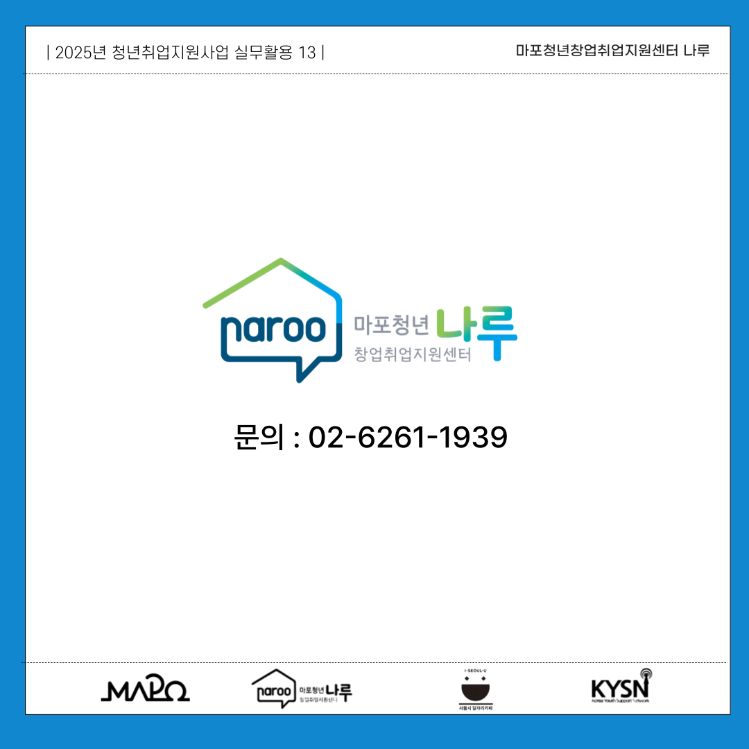 안녕하세요, 마포청년창업취업지원센터 나루입니다!