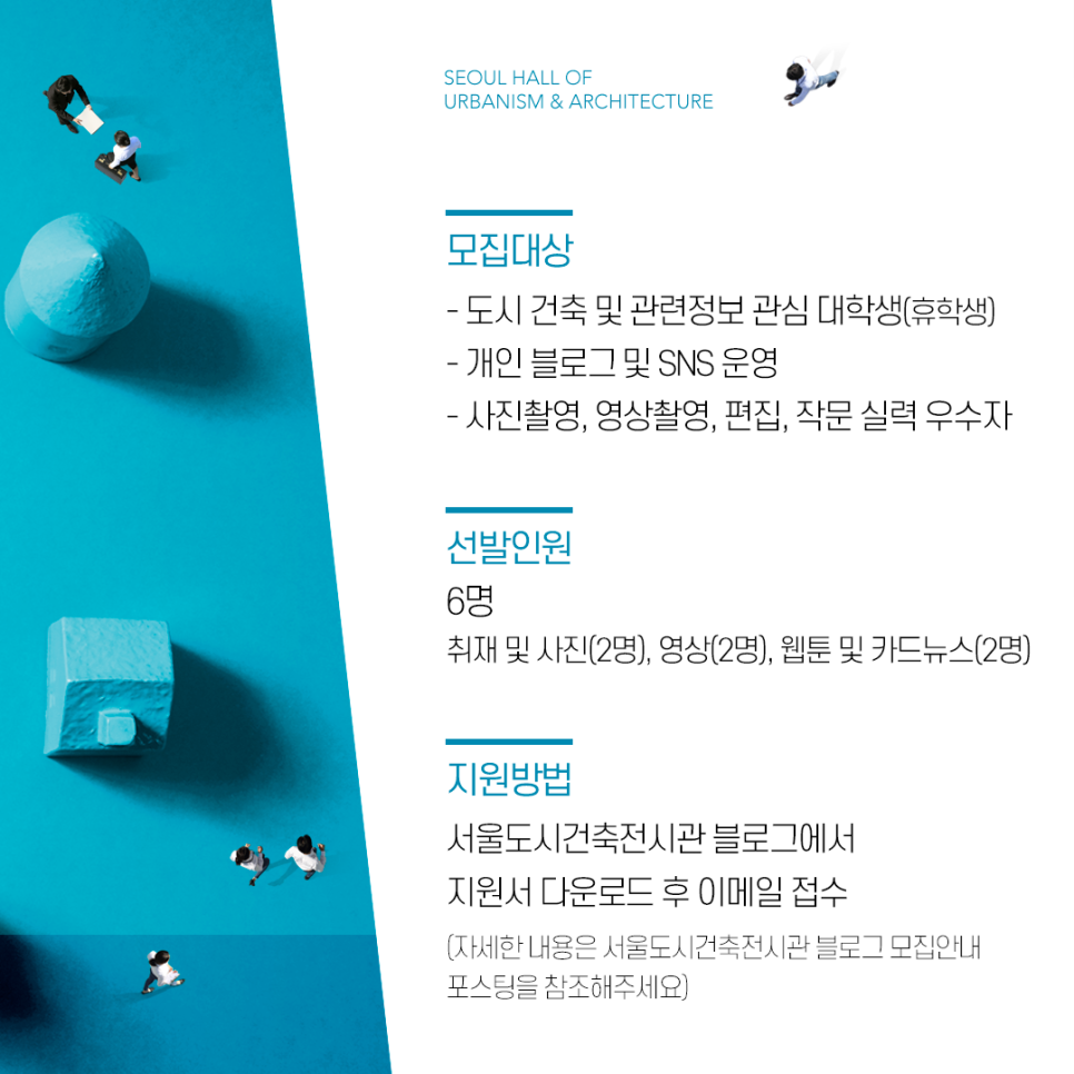 -서울도시건축전시관 블로그에서 지원서 다운로드 후 이메일(seoulhour@naver.com) 접수