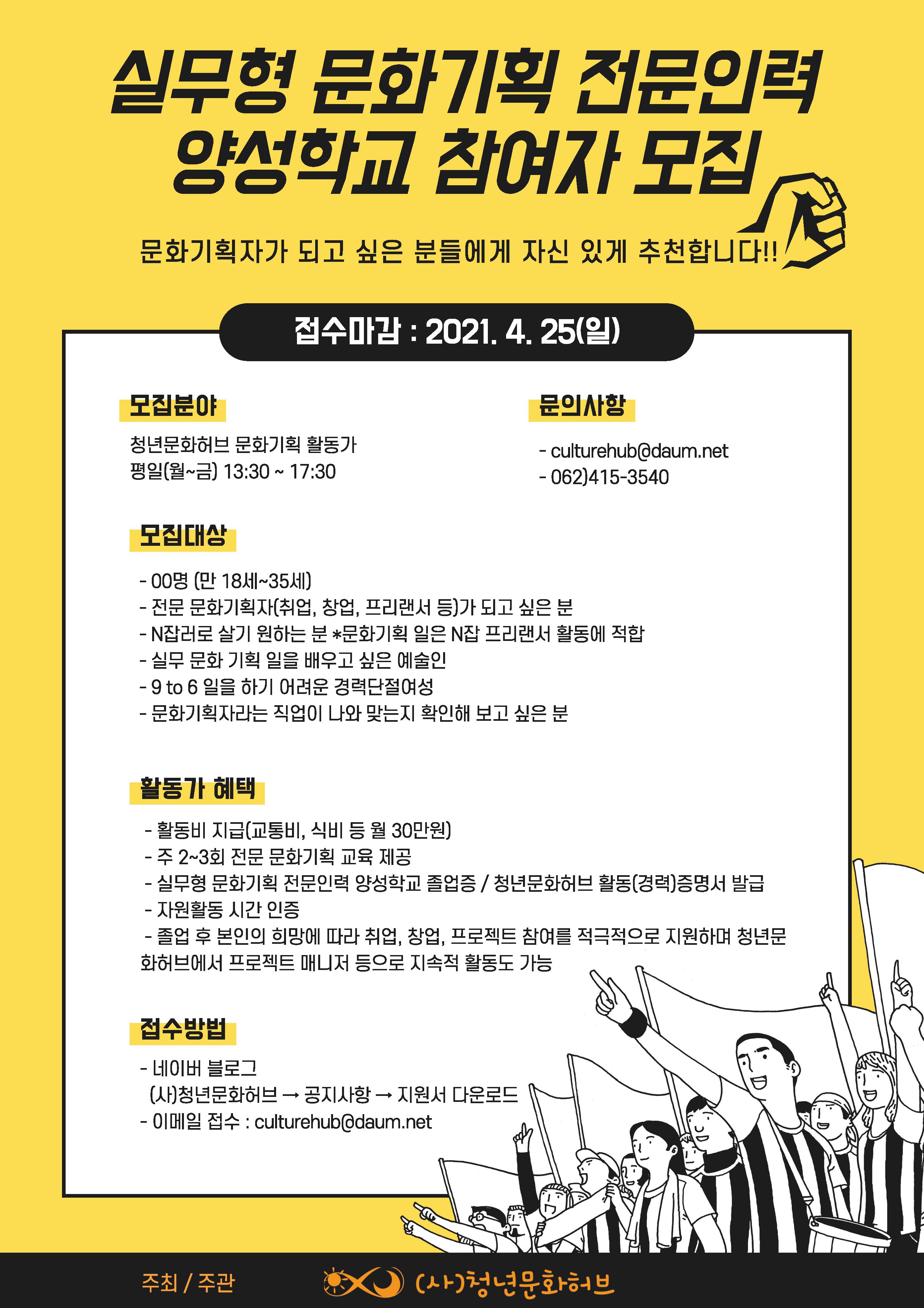 - 접수방법: 이메일 접수 (culturehub@daum.net)