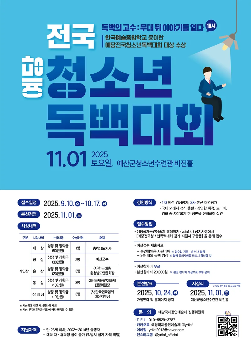 🏅 제13회 예당국제공연예술제 - 예당전국청소년독백대회 예선 접수 안내 🏅