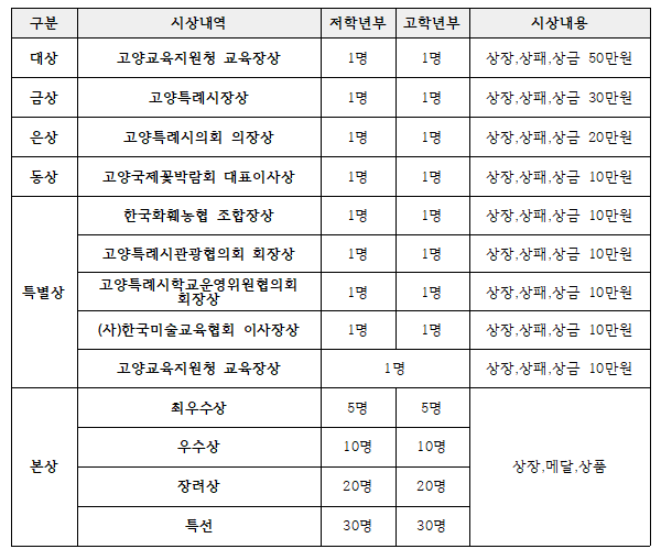 * 대회 참여인원과 수상인원의 비율에 따라 일부 수상인원이 변동될 수 있음을 이해 바랍니다.