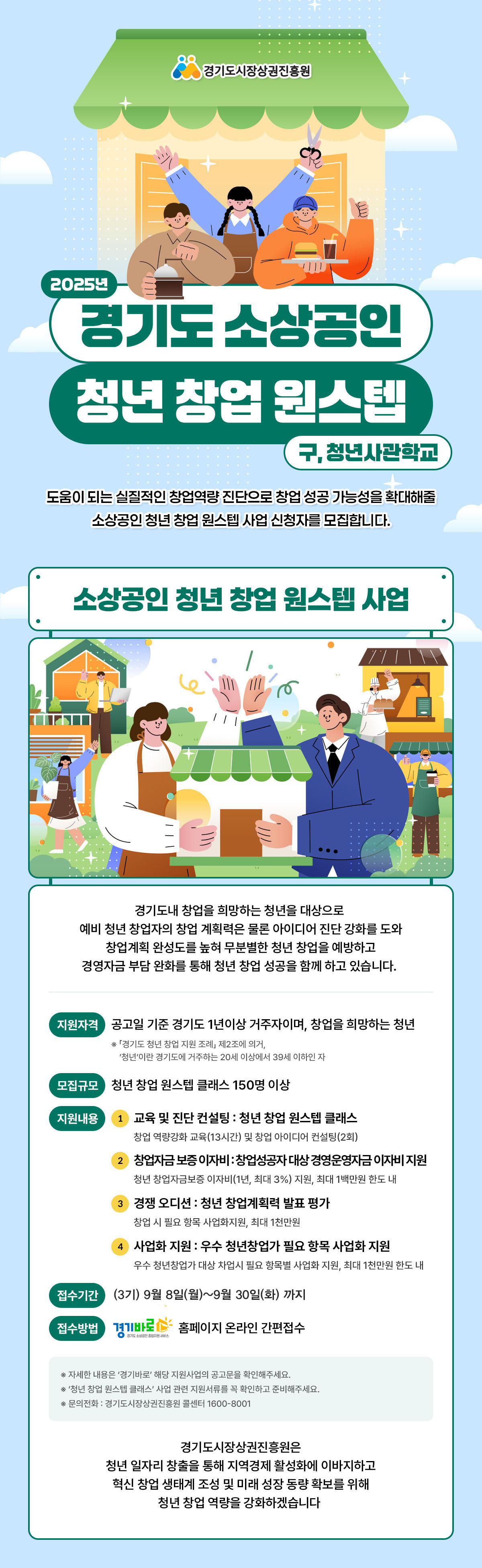 - 경기도 거주 청년 및 창업예정자, 창업에 관십있으신분 및 사업운영자(단, 교육, 컨설팅만 지원 가능)