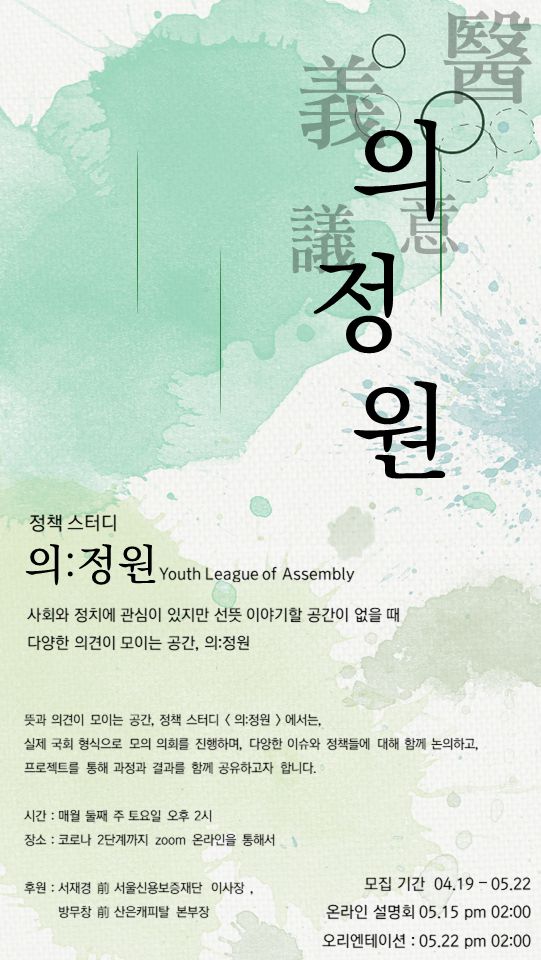 우리의 뜻이 모이는 곳, 의:정원에서 함께 더 나은 사회를 고민해봐요!