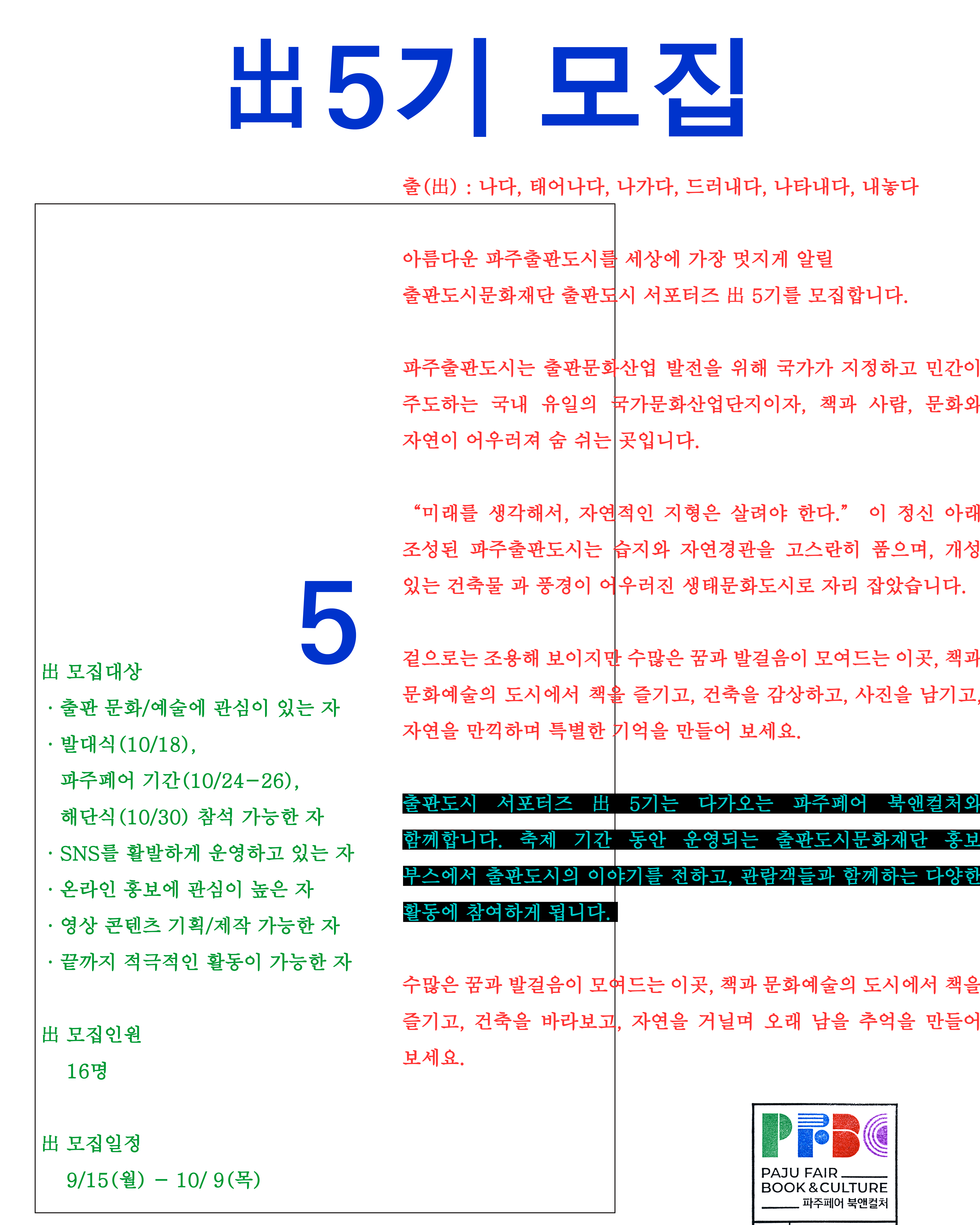 출판도시문화재단 출판도시 서포터즈 出 5기를 모집합니다.