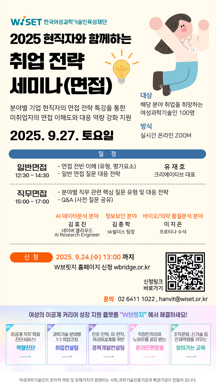 ◾ 대상: 해당 분야 취업 희망 여성과학기술인 100명