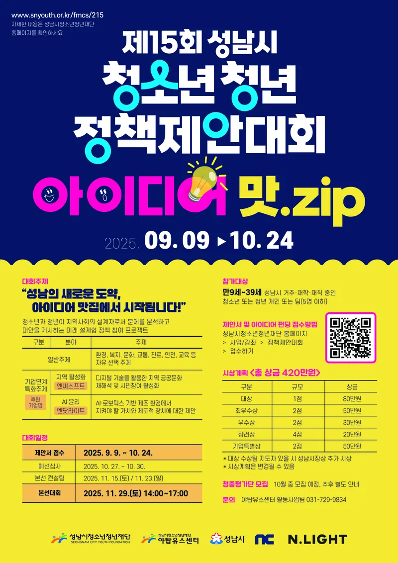 제15회 성남시청소년청년정책제안대회 [아이디어 맛.zip] 공고