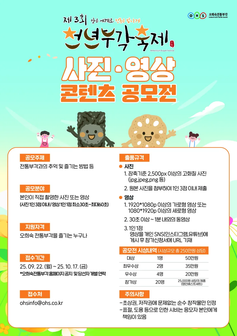 - 합격자 발표 : 오희숙전통부각 홈페이지 공지 및 당선자 개별 연락