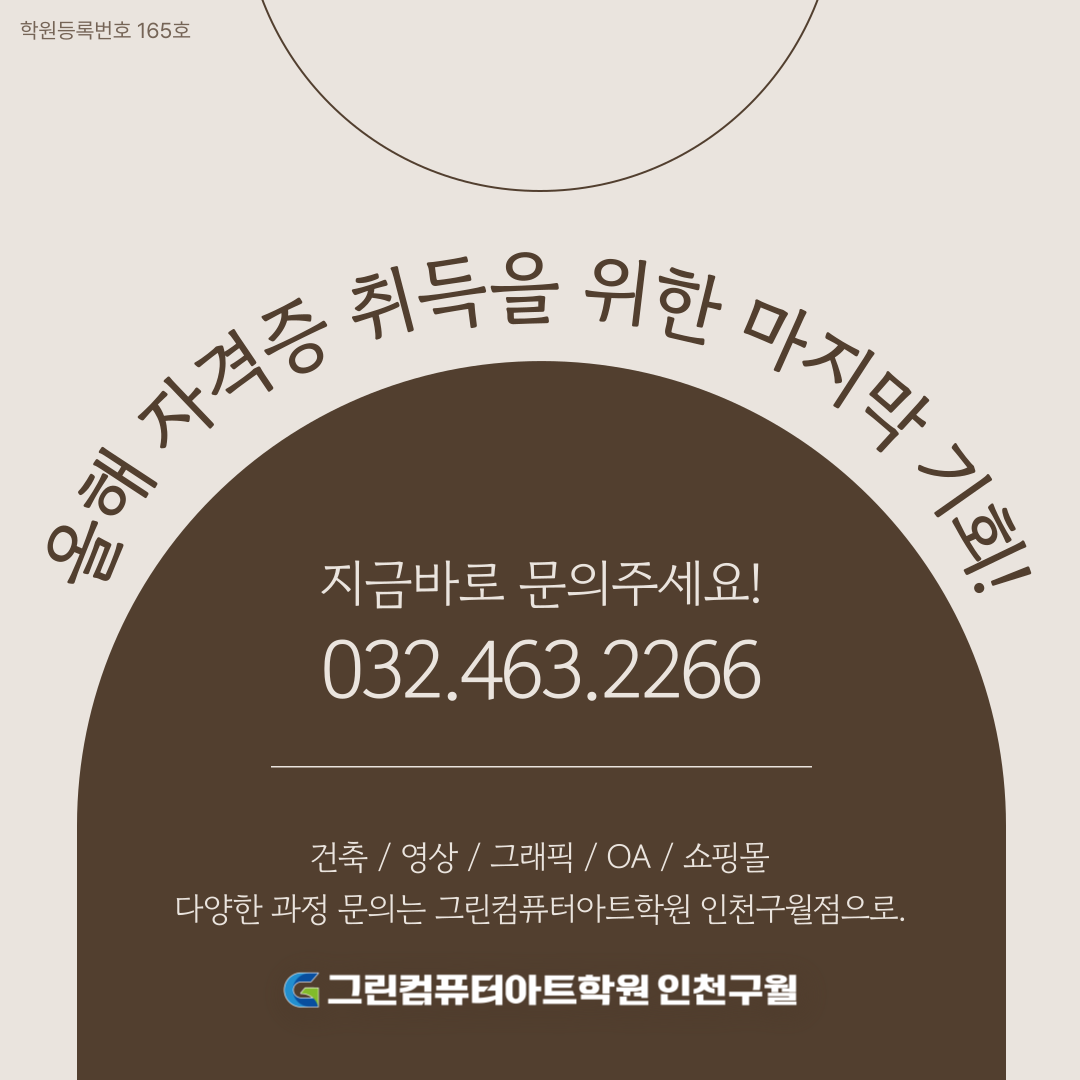 *학원 홈페이지 / 교습과목 및 교습비 : https://guwol.greenart.co.kr/?cam_idx=28 (내일배움카드 소지시 국비지원)