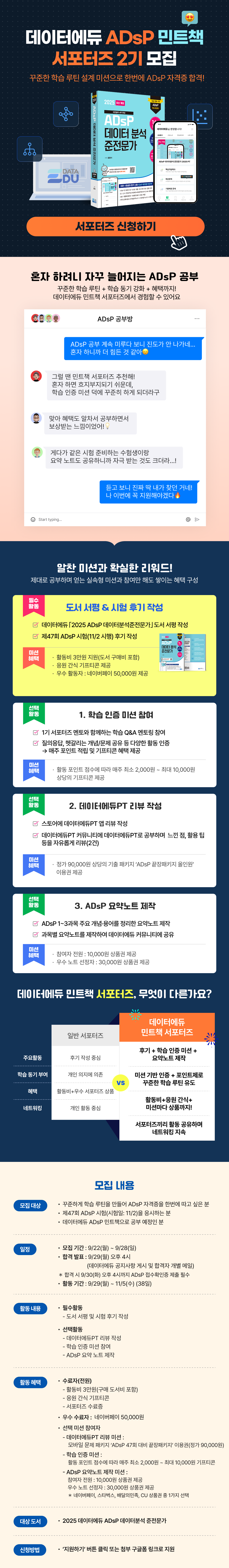 [(주)데이터에듀] 데이터에듀 ADsP 민트책 서포터즈 2기 모집