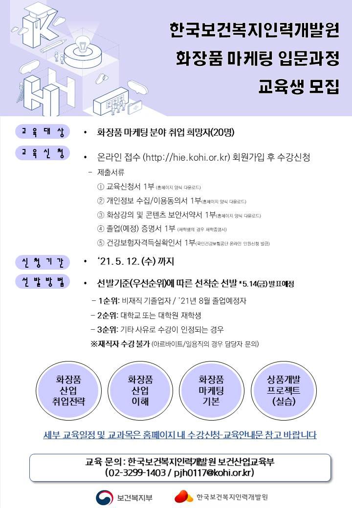 ㅇ (교육인원)화장품 마케팅 분야 취업 희망자 20명