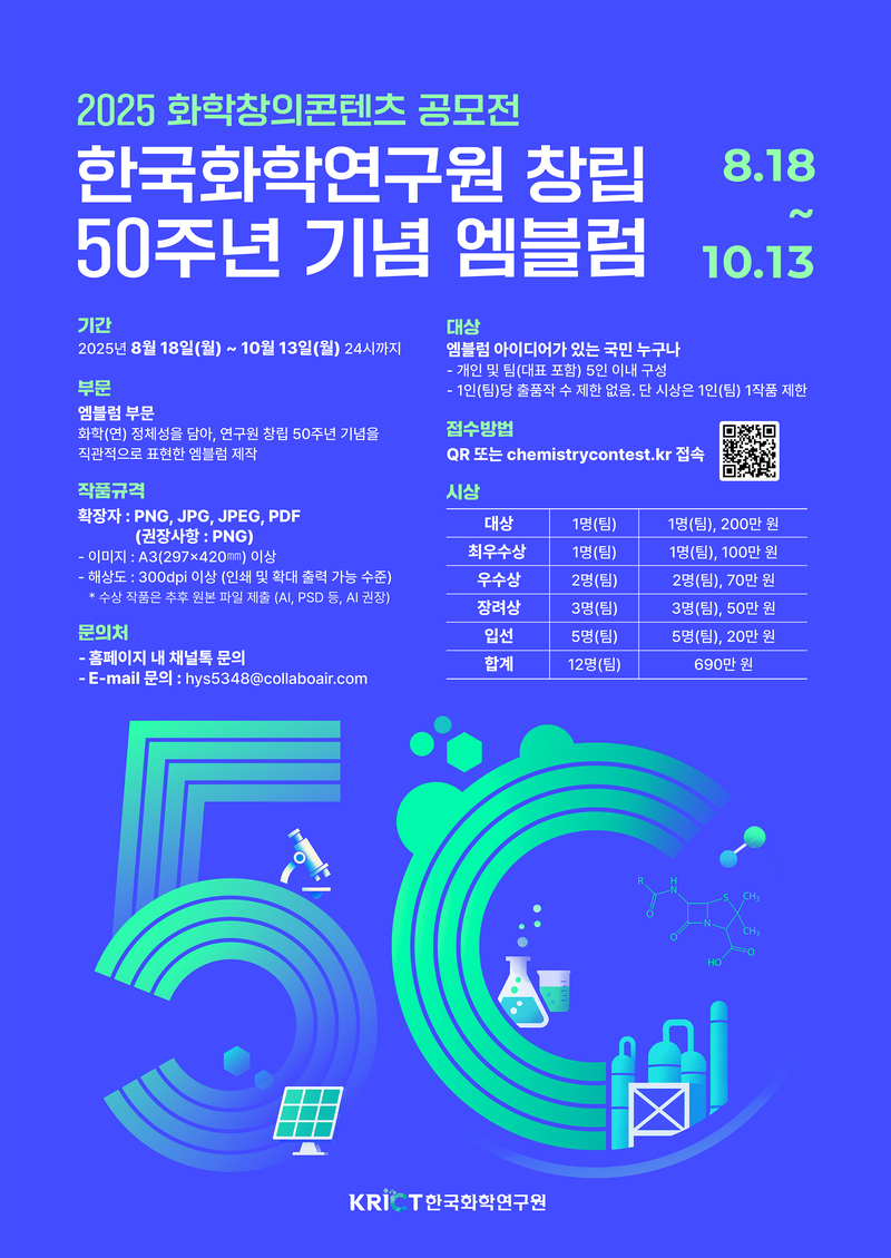 당신의 작품이 한국화학연구원 50주년을 기념하는 상징이 될 수 있습니다!