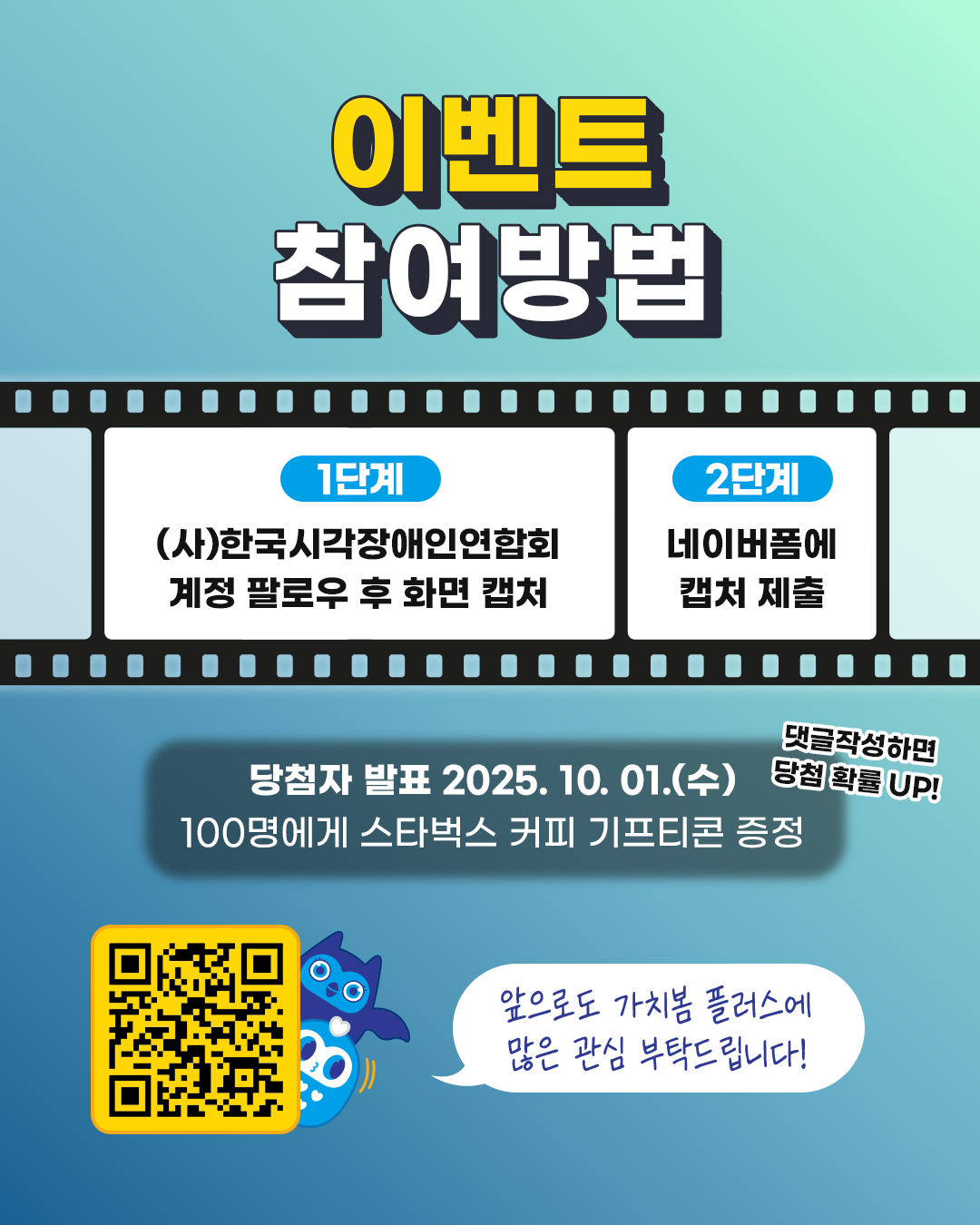 이벤트와 함께 가치봄플러스에 대한 관심과 응원 부탁드리며, 시원한 아이스 커피도 받아가세요!