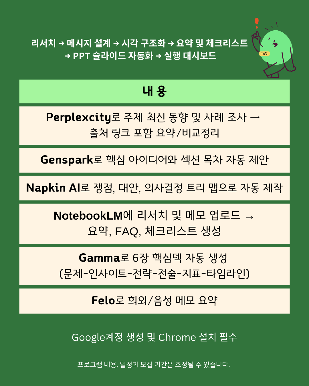 AI툴로 PPT·보고서 자동화부터 리서치, 핵심덱까지!