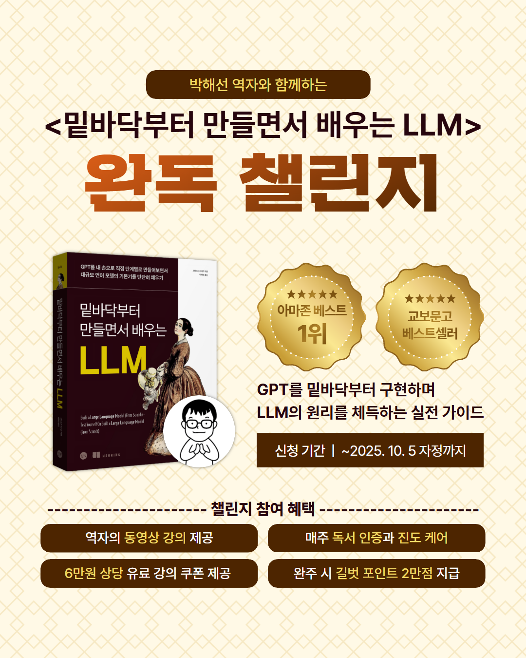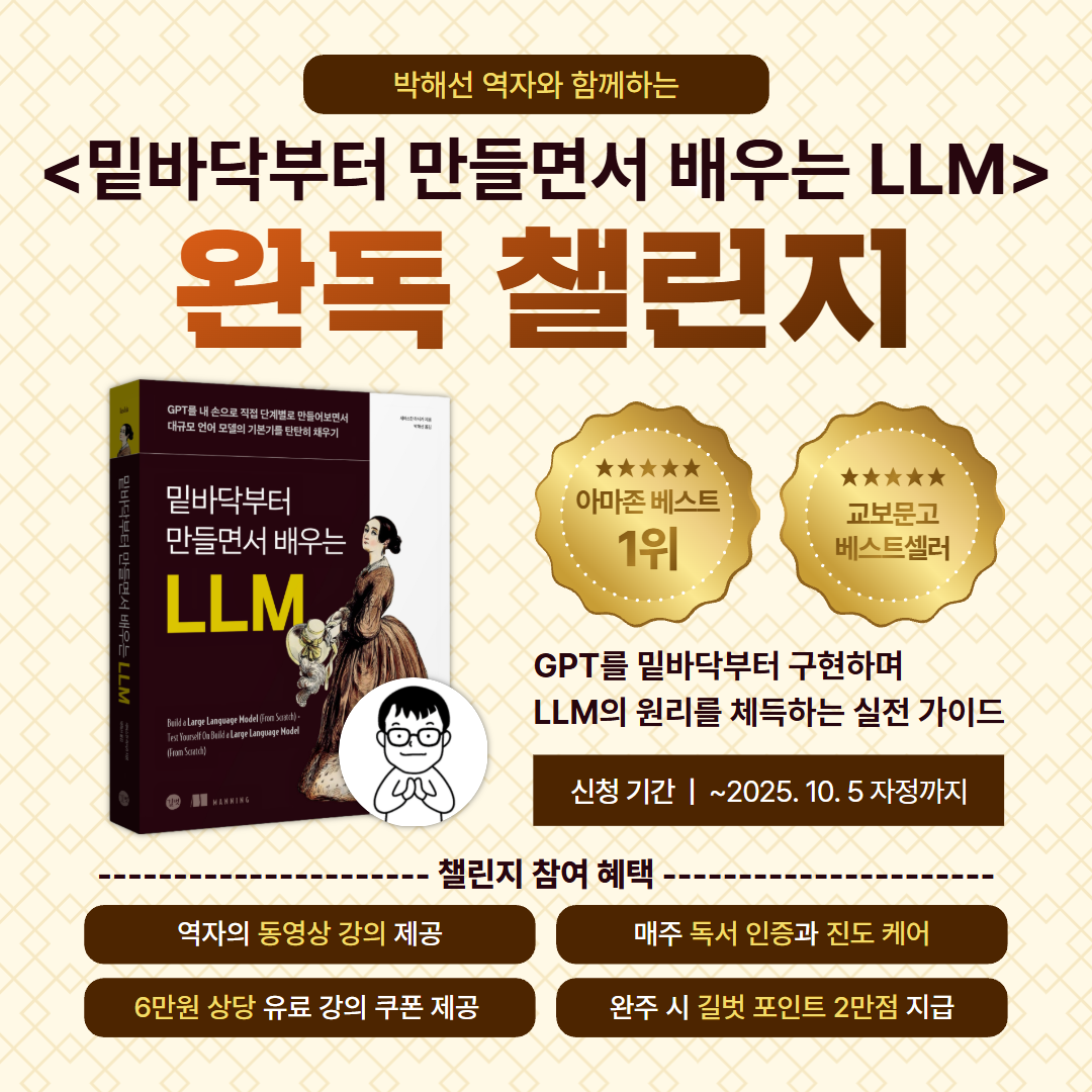 <밑바닥부터 만들면서 배우는 LLM>이 출간되었습니다!