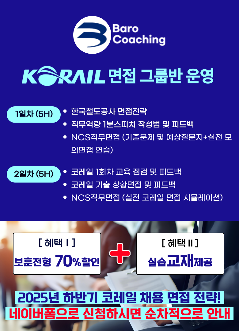 하반기 코레일 면접학원 최종합격 후기 한국철도공사 면접시험 준비