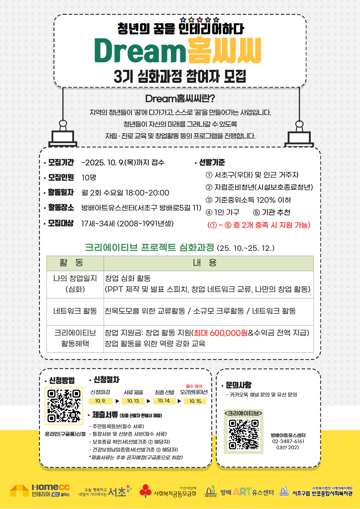 ● 문의방법 : 방배유스센터 - 크리에이티브 프로젝트(02-3487-6161(206))