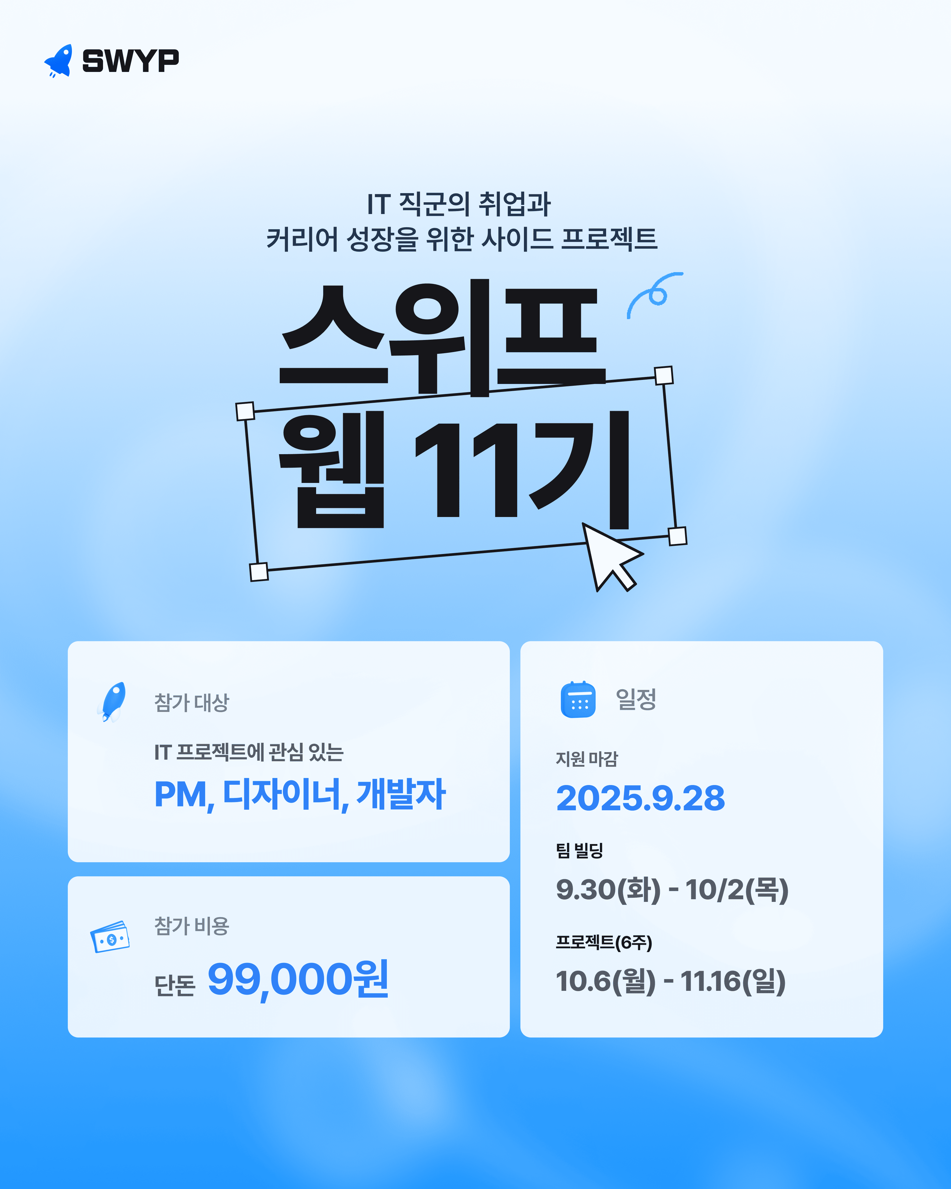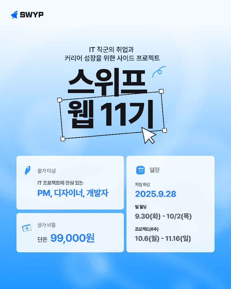 โ ์ค์ํ ์น 11๊ธฐ ํํ์ด์ง https://swyp.im/web