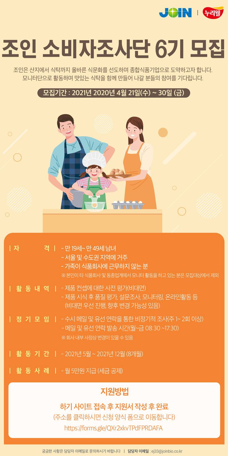 주식회사 조인 식품소비자조사단 6기 모집