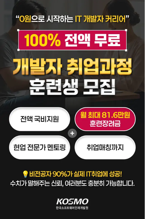 - 홈페이지 : https://www.ikosmo.co.kr (한국소프트웨어인재개발원)
