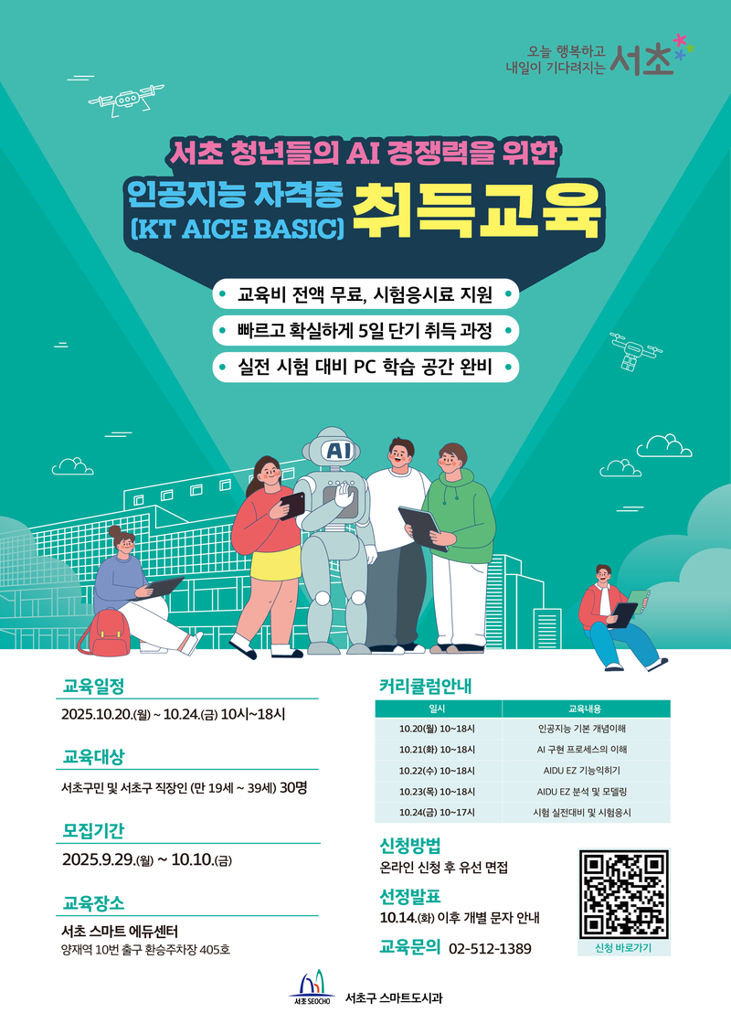 교육대상: 서초구민 및 서초구 직장인(만 19~39세) 30명