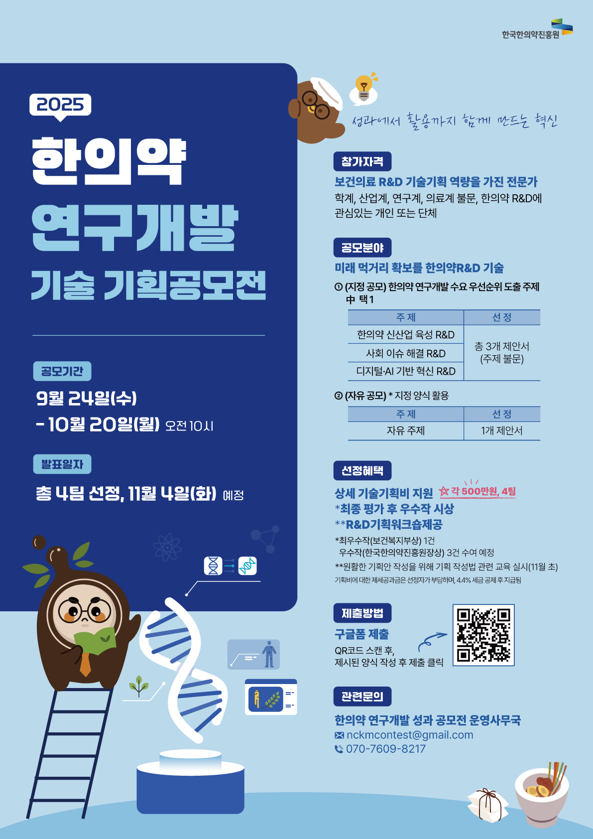 「2025 한의약 연구개발 기술 기획공모전」을 개최합니다.