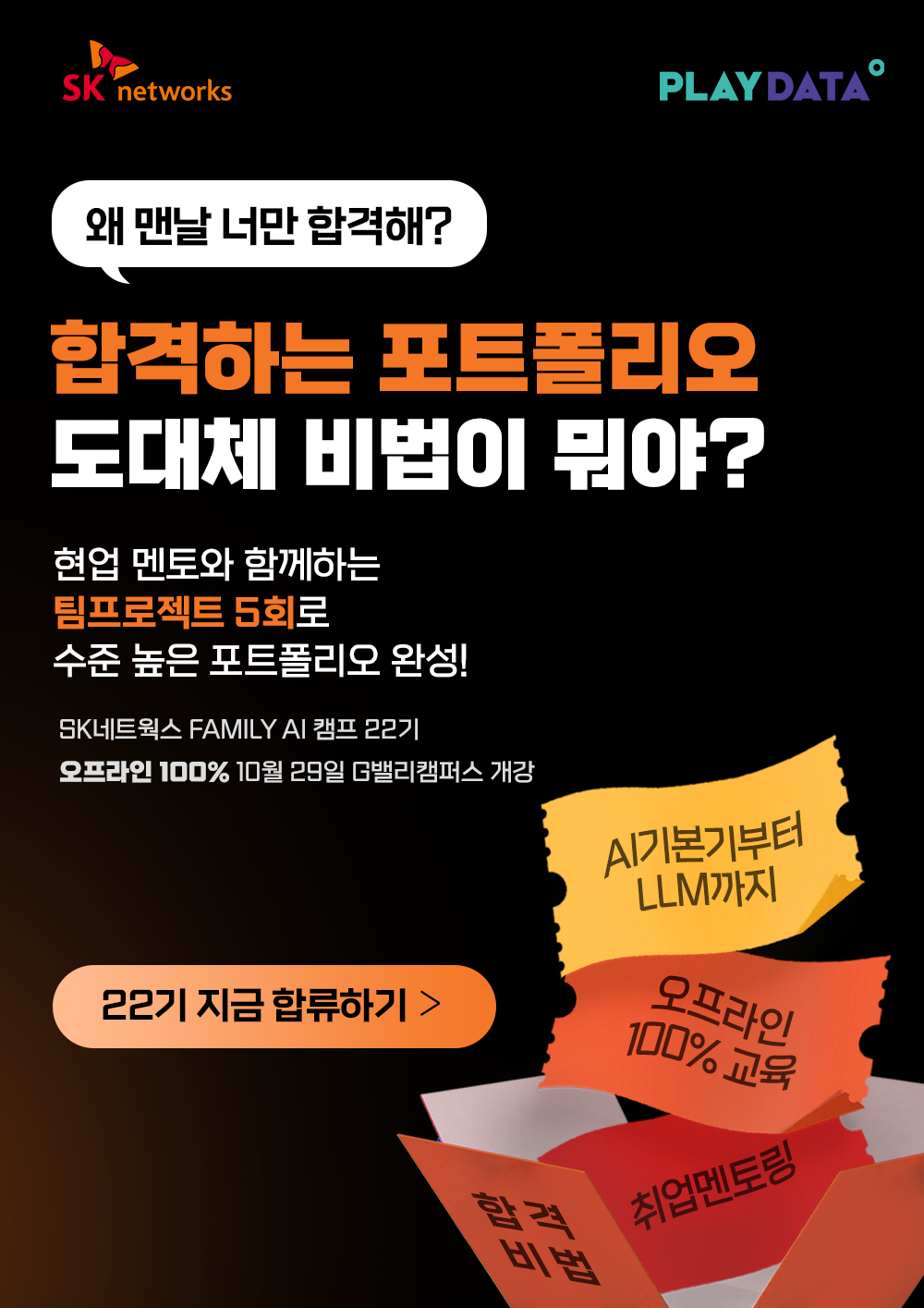 🔶 SK네트웍스 FAMILY AI 캠프 22기 교육생 모집