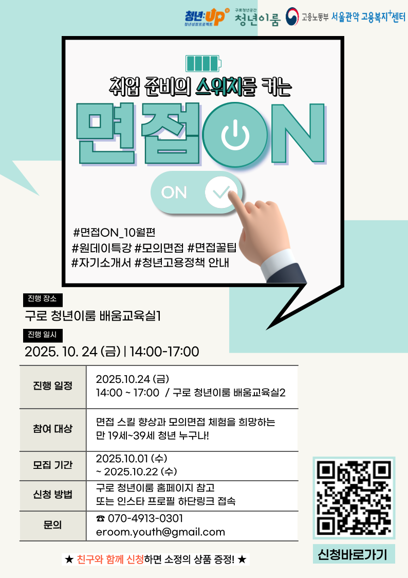 - 면접 스킬 향상과 모의면접 체험을 희망하는 만 19세 이상 ~ 39세 이하 청년 누구나!