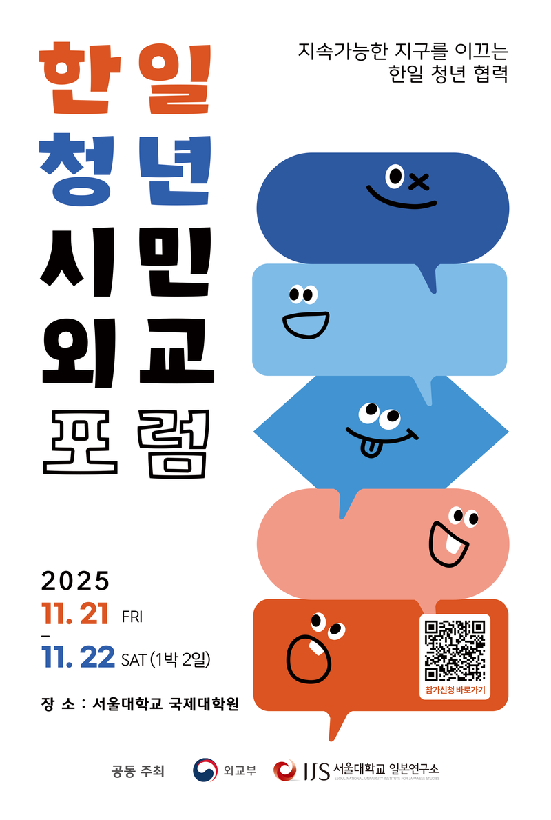 외교부와 서울대학교 일본연구소가 공동으로 주최하는「한일 청년 시민외교 포럼」은 한일 청년 간 상호 이해를 증진하고 교류를 확대하며, 미래 협력적 비전을 모색하기 위해 마련되었습니다.